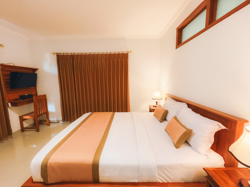 Discover the epitome of luxury in our Deluxe Room, where breathtaking views of the garden, mountains, and pool await you. This elegantly designed room features a plush double bed, inviting you to unwind in comfort. Wake up to the serene beauty of lush gardens, gaze at the majestic mountains, and enjoy the tranquil poolside ambiance right from your window. Perfect for couples and discerning travelers, our Deluxe Room offers a harmonious blend of nature and comfort, ensuring a truly unforgettable stay.